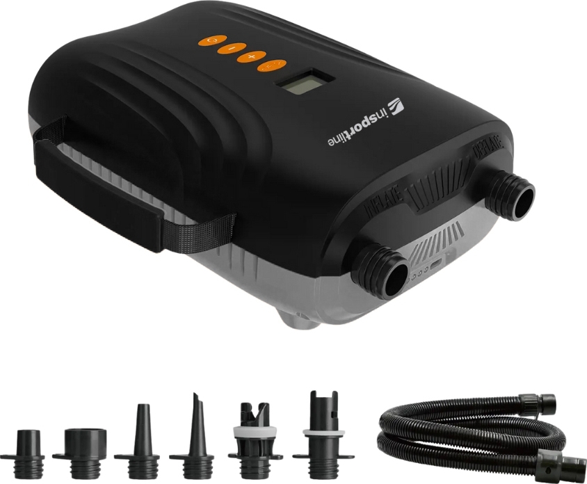 Embark on your water adventure worry-free with the Electric Paddle Board Pump w/ Rechargeable Battery inSPORTline Gonfiara, which will become your faithful companion, as it allows you to inflate or deflate your water gear quickly and comfortably! This compact air pump boasts a built-in battery and an LCD display, which makes it a perfect travel companion, whether you’re going to the lake, paddling on a river, or to the beach.