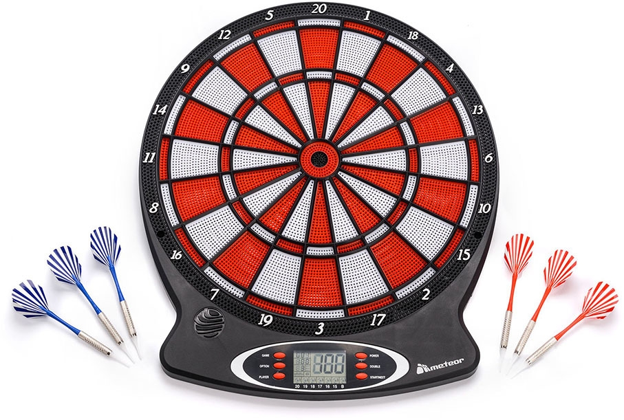 Tarcza do darta Meteor urozmaici wolny czas. Rzutki w zestawie. Model posiada wyświetlacz LCD.