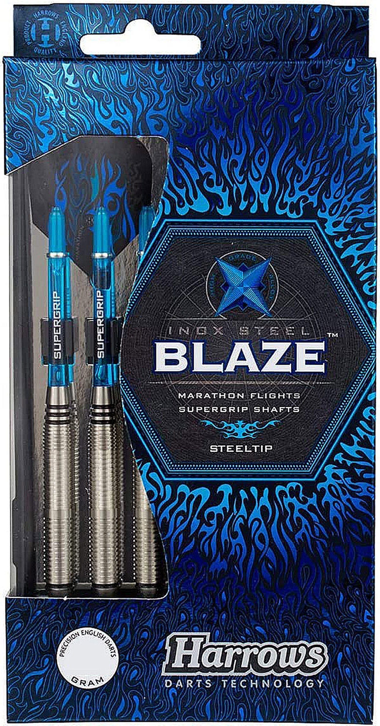 Harrows Blaze 21-grammiste noolemängude elegantsed ja stiilsed barrelid on valmistatud Inox terasest, mis on kõrge süsinikusisaldusega rauasulam. 56 mm pikkusel ja 8,4 mm läbimõõduga barrelil on ainulaadne mikro soonte kombinatsioon, mis tagab parima kontrolli viske üle. Harrows Blaze steeltip darts’i aerodünaamiline täiuslikkus on tagatud 100 mikroni Marathon 1519 lendude ja Supergrip-varraste abil.