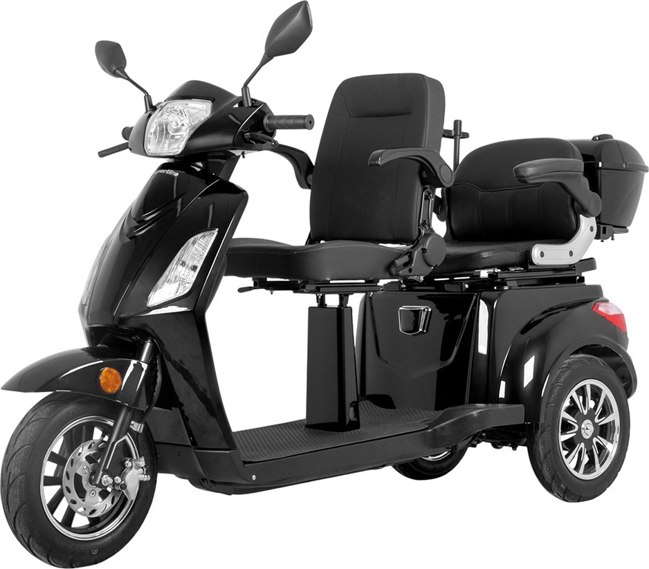 Leave your disability behind and enjoy the freedom of movement! This two-person three-wheeler will take you anywhere – for a comfortable shopping ride, a quick spin around the park, or to a get together with your friends. Thanks to the powerful, 1,000W brushless drive and the removable battery, you can go up to 60 km on a single charge. The scooter offers three speed modes – 10, 20, and 25 km/h, between which you can easily switch by pushing the button on the handlebars. You can follow your current speed, battery status, and total distance on a backlit digital screen.