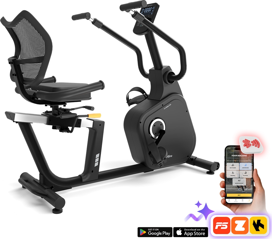 The inSPORTline ZenSeat 100 is not just an ordinary recumbent bike — thanks to Bluetooth connectivity, you can easily connect it to popular apps like Kinomap, Zwift, or FitShow. These apps allow you to train virtually, ride real-world routes, track your progress, or compete with other users. And if you want to make your workout more enjoyable, just place your tablet in the built-in holder and watch your favorite movie or listen to music.