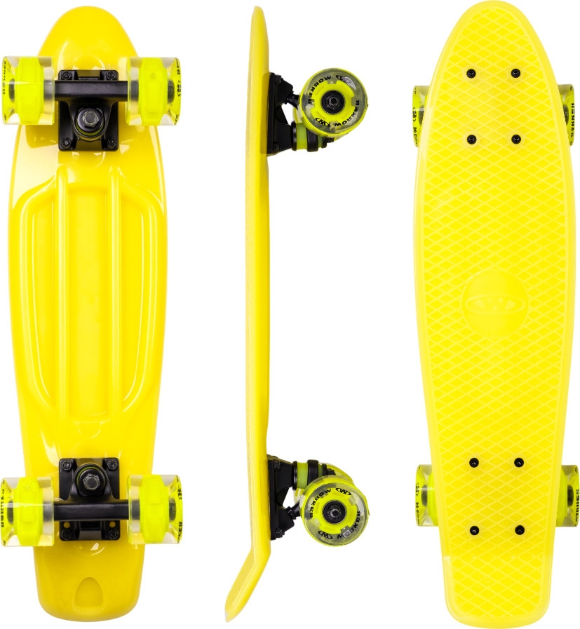 The Penny Board w/ Light-Up Wheels WORKER Aspy C3 22” is a small, playful cruiser that definitely won’t go unnoticed in the city. Its compact size, lightweight design, and kicktail shape make it an ideal companion for quick commutes, relaxed rides along the promenade, and evening cruising. As soon as you start moving, the LED wheels light up—a stylish effect that not only looks great but also makes you more visible.