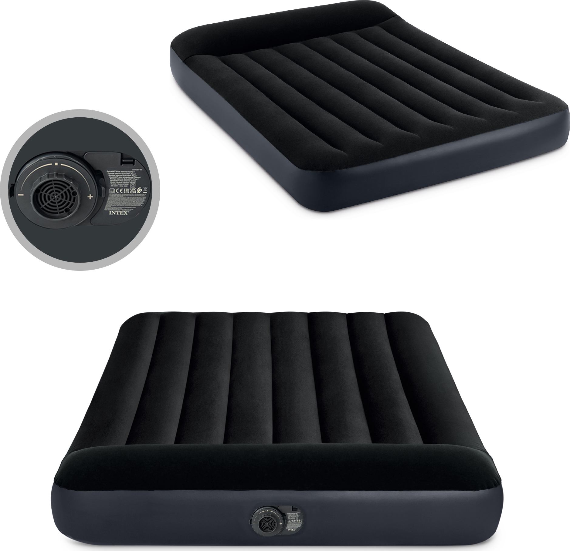 Materac welurowy INTEX, o wymiarach 191 x 137 x 25 cm jest idealny dla wypoczynku 2 osób. Wykonany z mocnego, tworzywa PVC, na górze został pokryty przyjemnym w dotyku wodoszczelnym materiałem welurowym. Całość w przyjemnej granatowej kolorystyce będzie pasował do każdego wnętrza. Dzięki wbudowanej pompce elenktycznej (zasilana 220 – 240 V). Czas potrzebny na przygotowanie do użytku dmuchanego łóżka to 250 sekund Zawór bostoński pozwoli w minute spuścić powietrze następnie złożyć i schować do szafy.