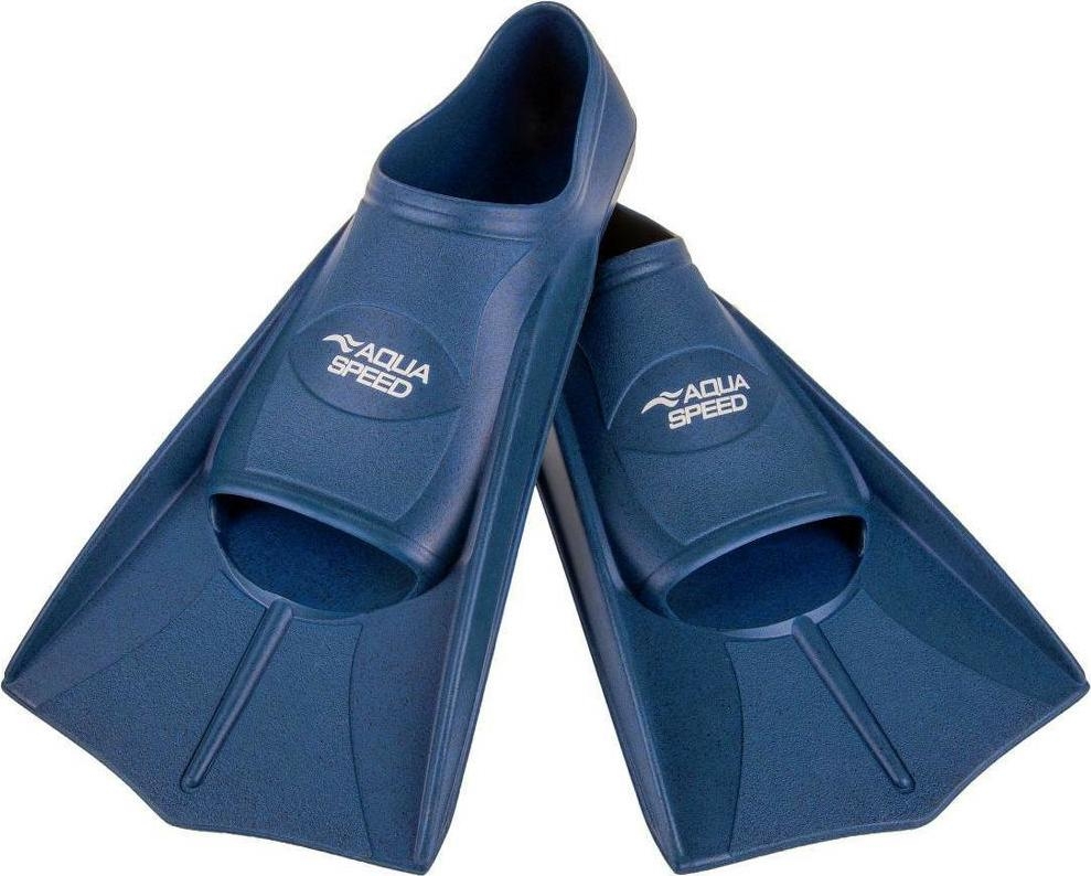 Short training fins made of highest quality soft and very flexible silicone material.  Aquaspeed training fins are perfect for all those who intend to improve their swimming technique, lower body strength and durability. Thanks to their design, they allow the swimmer to exercise leg movement very similar to the leg movement performed without any fins. Special reinforcing elements on the sides of the fins which begin at the foot pocket, apart from providing extra durability of the fins, channel water along the blades and reduce vibrations generated by the water flowing along the fins.  Aquaspeed traning fins greatly improve the efficiency of the legwork by providing greater thrust and by concentrating more energy on the legs, thus strengthening them.  Aquaspeed traning fins are perfect for schools, swim clubs and for individual customers who aim to improve their swimming technique and leg strength in their free time at a simming pool.