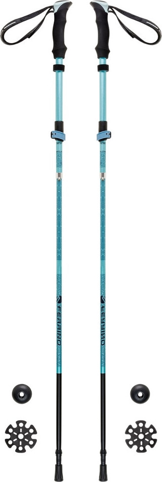 The FERRINO Ortles Lady are women’s trekking poles with a telescopic length-adjustment mechanism and two types of pads/baskets. Thanks to their compact collapsed size (40 cm), the poles take up minimum space in you backpack, thus allowing you to take them anywhere with you. The poles consist of 5 parts which can easily be put apart and then put back together using the quick-release LOCK & GO system, which allows you to adjust their length between 95 and 115 cm, thus making them ideal for women.